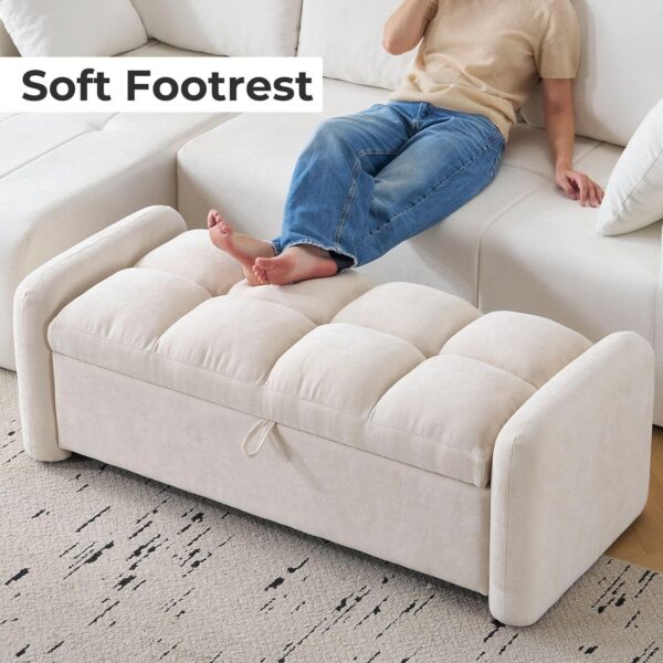 Large Storage & Safety Hinges:Our Oversized Storage Ottoman bench offers ample storage space to neatly organize books, stuffed animals, blankets, and more, keeping your living room or bedroom tidier and creating more usable space. Equipped with safety hinges on both sides, it combines aesthetic appeal with security, allowing for quick and easy access to your belongings.