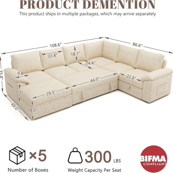 Be the first to review “SUAWY 108 Inch Sectional Sleeper Sofa with Pull Out Bed, U Shaped 7 Seat Modular Sectional Sofa with Storage” Cancel reply